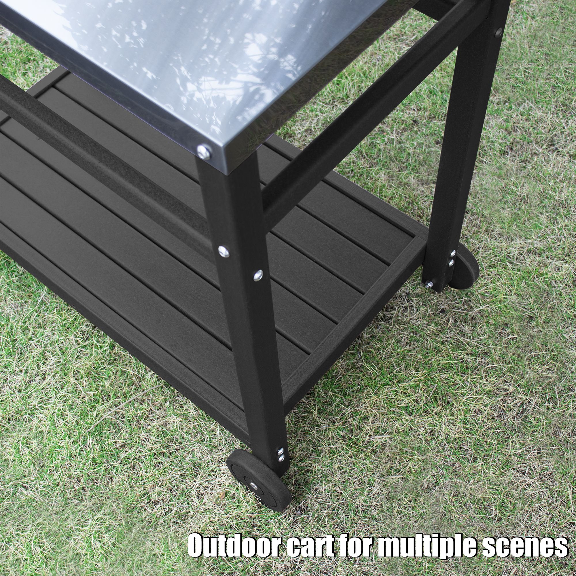 Outdoor Prep Dining Table; Movable Pizza Oven Stand; Stainless Steel Patio Bar Cart; Patio Grilling Backyard BBQ Grill Cart